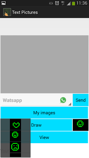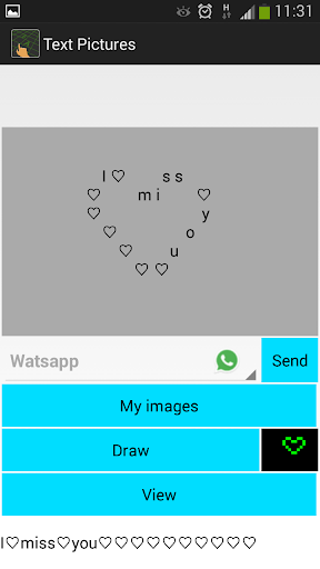 Draw an image first! Then enter your text into a text field and "Voila"! You can share the text pictures with your friends through sms or messengers.