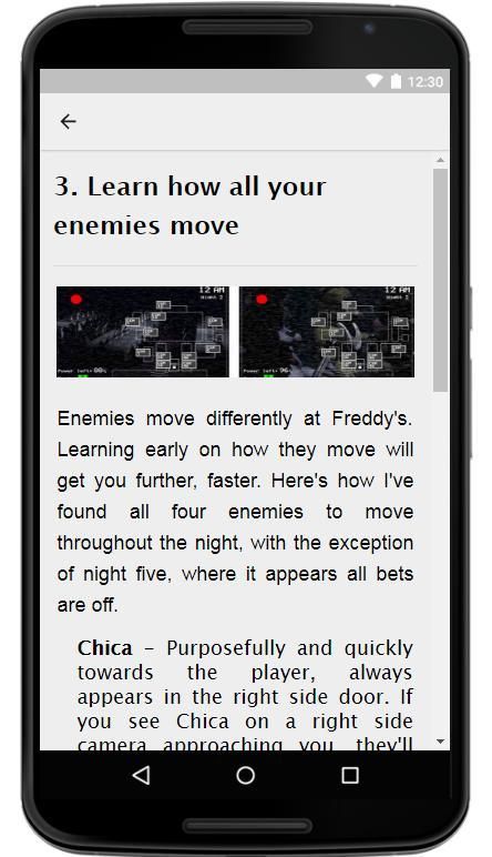 Пять ночей в Фредди лучший гид игры здесь. Для настоящих любителей пяти ночей в игре Фредди, конечно, не может ждать новых пять ночей в версии Фредди нового года. Пять ночей в игре Фредди станет очень популярной игрой среди пяти ночей в Фредди. С этой целью мы создали специальную инструкцию для вас любителей игры пять ночей в Фредди будет легче играть в игру пять ночей в Фредди с помощью нашего гида. Это приложение поможет вам идти от пяти ночей в начинающий игрок Фредди используя секретные советы и приемы. она содержит пять ночей на скачать уловки Фредди, а также защиты и нападение руководство. Скачать пять ночей в направляющем приложении Фредди теперь и быть лучшим игроком в этих Пяти ночах в игре Фредди. это приложение не игра, это просто guide.Manage пяти ночей в Фредди бесплатно один из лучших советов и руководства. Это приложение содержит пособие для воспроизведения этой утечки, которая состоит из нескольких советов и ловушек, чтобы упорядочить партнер этого развлечения, чтобы закончить все миссии в руководстве recreations.The Суперпоклонника для пяти ночей в руководстве Фредди. Лучшие Pro приложения Руководство надежно режущую кромку с исключительно правильной, устойчивой информации Лучший туз ловушки гигантский вентилятор assemble.Set высокие оценки, тестирования и помочь своим партнерам.