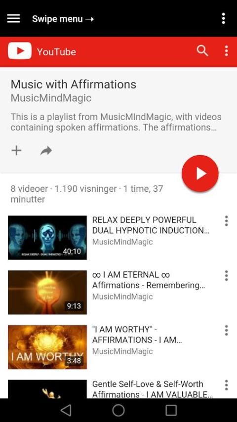 Вы также можете прослушать готовое смешанное воспроизведение видео с различной аффирмацией или списками воспроизведения с расслабляющими медитативной музыкой.