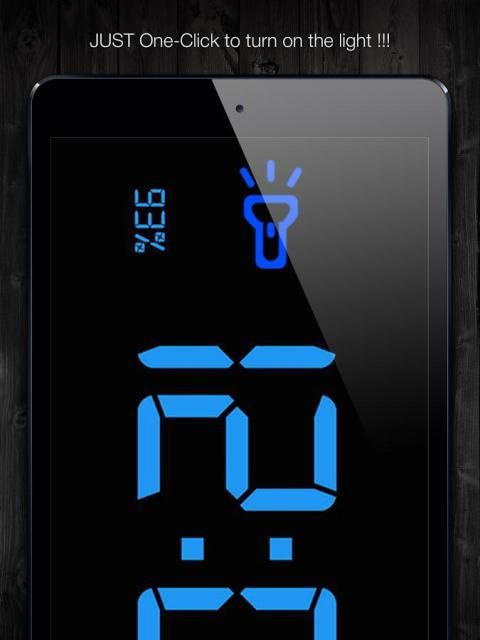 Мягкая цветная цифровая ночь часы, не беспокоить вас во время сна. Полноэкранный Night Clock с JUST One-Click, чтобы включить фонарик, настолько проста в использовании и поиск объектов в ночное время. Состояние батареи всегда будет отображаться на экране.