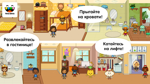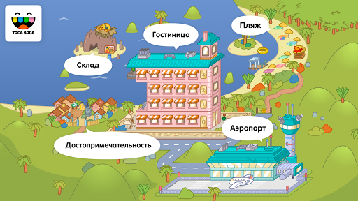 В игре Toca Life: Vacation можно как следует порезвиться в 4 местах. Будьте уверены, у вас не закончатся идеи для своих историй. Хотите начать приключение прямо с аэропорта? Повеселитесь с рентгеновским аппаратом, пройдите в салон самолета и осмотрите его кабину. Потом перекусите и насладитесь полетом! По прибытию у вас будет уйма возможностей проявить себя: сходите в магазин, поглазейте с мостков, поиграйте на пляже, займитесь серфингом и осмотрите гостиницу.