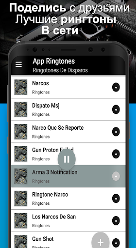 Это приложение для мобильного телефона с реальными звуками оружия, чтобы загрузить все лучшие бесплатные мелодии оружия оружие. Наркофонная музыка для мелодий звонков наркосигналы радио, мелодии для пистолетов, мелодии звонков Narcos для бесплатного мобильного телефона и марш-рингтоны, это приложение просто в использовании, наслаждайтесь предпочтительным ритмом бесплатных мелодий оружия и громких звуков для телефона, есть много мелодий звонка выстрелов для сотового телефона звуки реальных орудий для мобильного телефона. выбирайте звуки своего оружия для WhatsApp с новыми мелодиями выстрелов, тембрами выстрелов, песнями narcos северными звуками настоящего оружия для мобильного телефона, каждый из которых высокого качества можно услышать, скачать и установить тон по умолчанию сильные тоны пистолетов пистолетов рингтоны нет Больше поиска в интернете мелодий для звонков теперь у вас есть здесь, чтобы загрузить и установить в качестве мелодии звонков для мобильных телефонов, теперь у вас есть мелодии для выстрелов WhatsApp бесплатные мелодии для оружия для мобильных телефонов, мелодии звонков для уведомлений. Плохие звуки для мобильных устройств скачать прямо сейчас звуки оружия для WhatsApp, звуки оружия для уведомлений о наркотиках - лучший вариант для вас, так как это сборник с мелодиями и песнями тонов колумбийских колумбийских наркоторговцев, признанных бесплатно.
