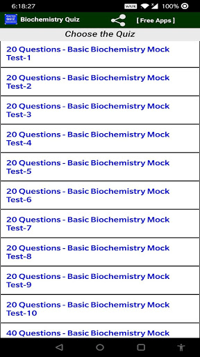 Biochemistry app having more than 1100 quiz questions for best practice