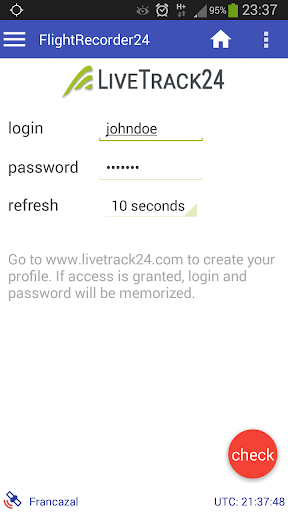 - live track through livetrack24.com