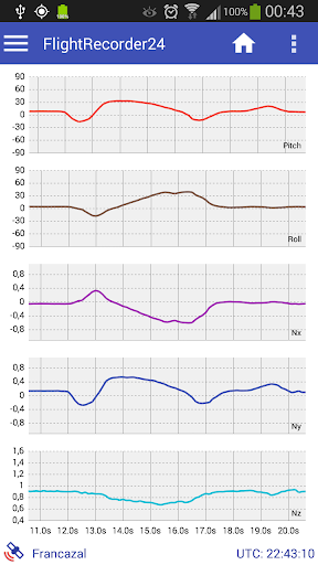 This Android app can record your flights in a KML, CSV& IGC file. The sampling rate depends on the selected activity (high sampling for aerobatics). Here is a list of the main recorded parameters: load factors, attitude, roll, yaw, GPS position, altitude, speed, pressure, vertical speed. KML, CSV & IGC files can be directly sent by e-mail or into your cloud.