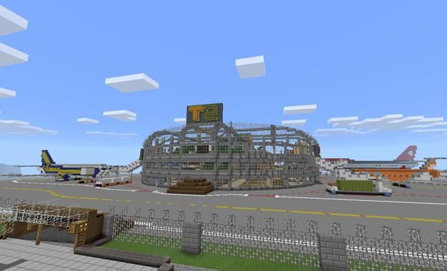 Это реалистичный аэропорт создано изначально для Minecraft на ПК, но теперь была портирована на Minecraft Pocket Edition. Карта включает в себя две большие клеммы и все из них связаны с автомагистралей. Система поезд соединяет два терминала вы можете легко получить от одного к другому.