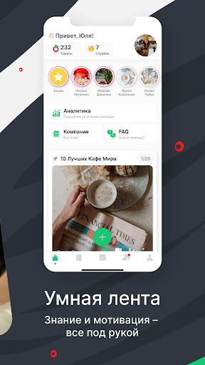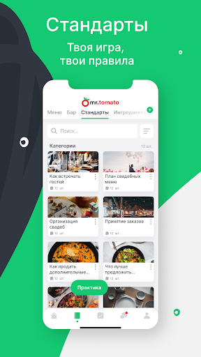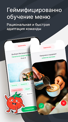 Наблюдайте, как ваша команда прогрессирует вместе с Mr. Tomato. Теперь новые сотрудники будут учиться на 80% быстрее с помощью автоматически сгенерированных тестов на основе вашего меню, бар-меню и стандартов обслуживания. Кроме того, каждый сотрудник будет иметь свою роль и соответствующие уровни доступа, а цифровая экосистема обеспечит удобную коммуникацию, четкое планирование.
