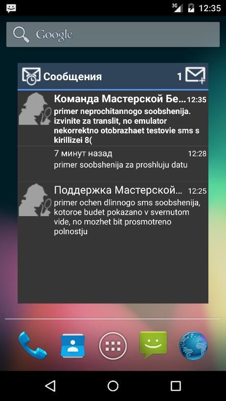 - нажмите кнопку создания сообщения в заголовке виджета, чтобы открыть диалог создания сообщения в приложении СМС по-умолчанию;