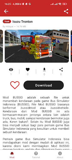 Это приложение содержит коллекцию модов для BuseSID, в этом приложении десятки модов Bussid с различными типами транспортных средств, таких как Busbus HD2, HD, MHD, SHD, HDD, UHD, DD, XHD Prime, JB3, Avante, Bummel.Существуют грузовики, есть раковые грузовики, Fuso, Hino, Young Oppa Canters, анти -босипские банки.В таких приложениях есть еще много модов, таких как: