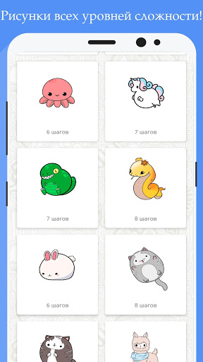 "Учимся рисовать милые рисунки" научит вас, и ваших детей рисовать. Рисовать по клеточкам, рисовать мультики, аниме, милые рисунки, фурри, героев из манга, рисунки для срисовки поэтапно.