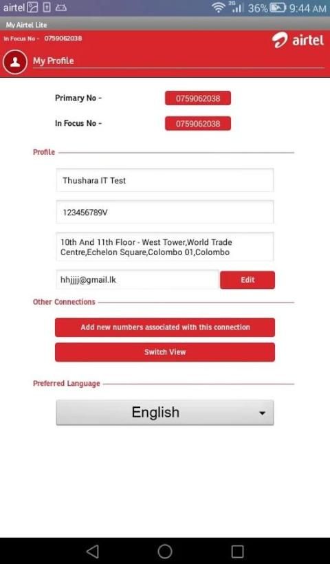 My Airtel Lite App это бесплатное приложение обслуживания клиентов предназначен для абонентов Airtel в Шри-Ланке. Это приложение может быть использовано предоплатной и постоплатной пользователей. Это позволяет вам быстрый доступ к вашей учетной записи остатков и подписки. С помощью этого приложения вы можете также послать запросы клиентов / жалобы в команде обслуживания клиентов Airtel для быстрого разрешения.
