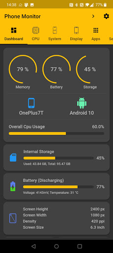 Приложение мониторинга устройства, которое предоставляет пользователю базовой информацией о программном обеспечении и аппаратном обеспечении.