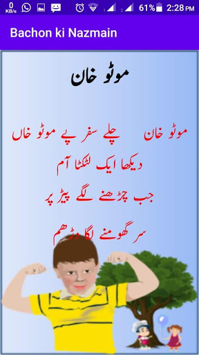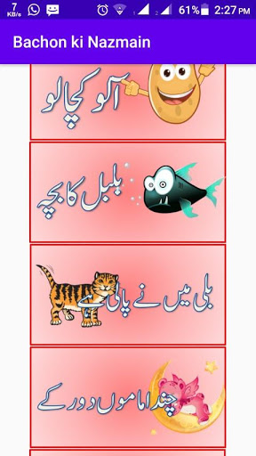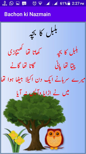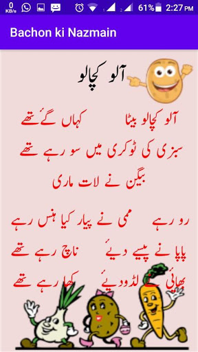 Скачать стихи bachon ki nazmain hindi rudu: urdu Стихи для детей - это приложение для Android, которое содержит детские стихи для детей для изучения стихов питомника и рифмы или стихи для малышей. Это очень хорошее приложение 4 детей и ребенка. Это приложение питомника поэм будет очень полезно для малышей к поэтам урду, Bachon ki nazmain Hindi urdu.