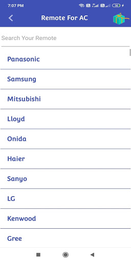 1- После загрузки этого кондиционера Приложение дистанционного управления, первый шаг - выбрать бренду кондиционера в списке ,