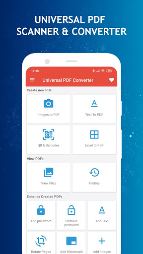 Универсальный PDF сканер и конвертер помогают сканировать, преобразовывать и управлять файлами PDF. Это приложение поддерживает вас открывать PDF-файлы и читать документы в автономном режиме где угодно, в любое время. Нажмите на изображение с камеры или выберите один из галереи и конвертируйте его.