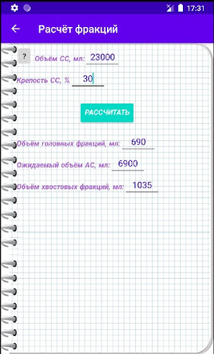 Также есть функция "разбавление самогона", которая поможет Вам рассчитать какое количество воды необходимо добавить чтобы разбавить спирт до определённого градуса.