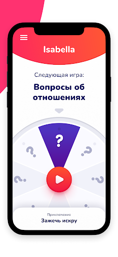 Игрокам нужен только один телефон. Введи свои имена, выбери одно из множества предложенных приключений и крути колесо. Каждое приключение ориентировано на пары, находящиеся на разных стадиях отношений. Приключение состоит из смеси различных мини-игр, помогающих достичь конкретной цели в отношениях. Например, целью может быть узнать друг друга лучше или попробовать новые захватывающие вещи вместе! Всё, что тебе нужно делать, - это крутить колесо и улучшать свои отношения с помощью содержательных бесед, забавных вопросов и романтических моментов для двоих.