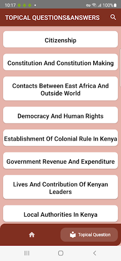 История: F1 - F4 Особенности Справочника Форма 1 - Форма 4 ИСТОРИЯ И Правительственные стандартизированные примечания KCSE.Основная цель приложения - снабдить студентов и других пользователей историческим и государственным контентом.В приложении представлены следующие темы:
