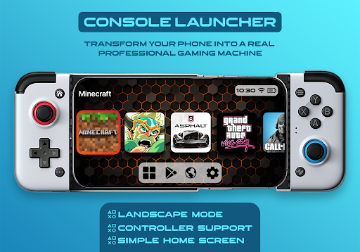 Консольная пусковая установка предназначена для Gamer для создания мобильной консоли - как опыт.Это только делает ваш телефон похожим на игровой консоли.