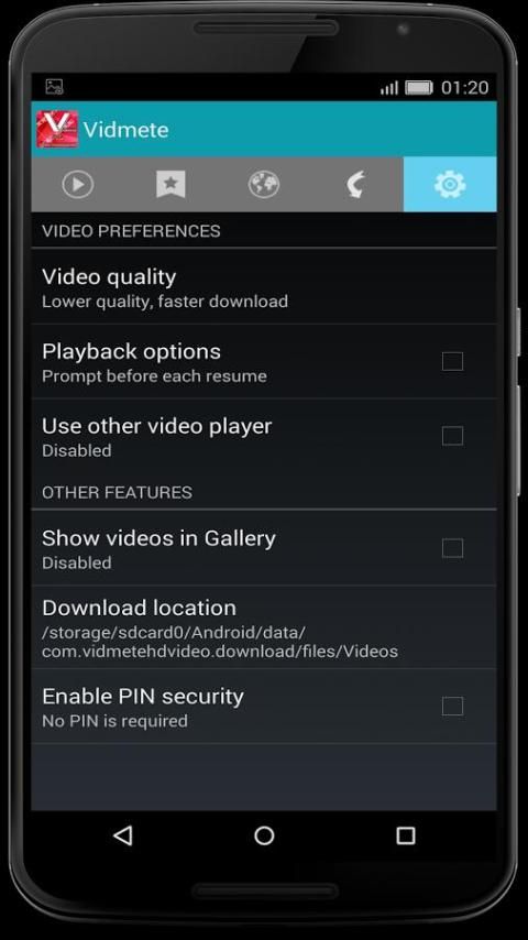 В vidmete HD видео загрузки вы можете изменить качество видео, которое вы хотите скачать на странице настроек.