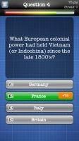 When was the Vietnam War? Who was in it? Download “Vietnam War” Quiz to answer these and many other questions about war in Vietnam! If you think you know all the years and other facts related to the battles and its participants get this app now and prove it! - Choose the mode you like: 10 Questions, 25 Questions, 50 Questions or 5 Errors Endless! - Choose an answer from A, B, C or D! - Think fast and answer correctly to get higher rankings! - Get Scandalous Score Booster by answering the question worth more than 2000 points! - If you choose 5 Errors Endless Mode your game will last until you give 5 incorrect answers! - You can share your score and achievements with your friends on Facebook! The Vietnam War was a long, costly armed conflict that pitted the communist regime of North Vietnam and its southern allies, known as the Viet Cong, against South Vietnam and its principal ally, the United States. The war began in 1954 (though conflict in the region stretched back to the mid-1940s), after the rise to power of Ho Chi Minh and his communist Viet Minh party in North Vietnam, and continued against the backdrop of an intense Cold War between two global superpowers: the United States and the Soviet Union. More than 3 million people (including 58,000 Americans) were killed in the Vietnam War; more than half were Vietnamese civilians. By 1969, at the peak of U.S. involvement in the war, more than 500,000 U.S. military personnel were involved in the Vietnam conflict. Growing opposition to the war in the United States led to bitter divisions among Americans, both before and after President Richard Nixon ordered the withdrawal of U.S. forces in 1973. In 1975, communist forces seized control of Saigon, ending the Vietnam War, and the country was unified as the Socialist Republic of Vietnam the following year. This interesting free app tests your knowledge of Vietnamwar and has questions related to the timeline and other facts concerning this war. It also helps you learn new things about Vietnamese War, without having to read some boring history book. Hope you’ll enjoy playing our free quiz game “Vietnam War” and have fun learning new useful things! Ads information: ============= This app is free and ad supported. When you install it, you may get shortcut icons on your background which lead to more free and sponsored apps. If you like, you can remove them anytime without further consequences. You may also get certain notifications about new apps, but if you don't want to receive them either, you can chose to opt out at http://www.airpush.com/optout and http://opt.leadbolt.com/ or you can do it directly from the icon.