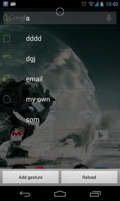 ** Примечание: Длительное нажатие на покрытии из круга, чтобы активировать программу. Тогда проведите вправо, чтобы открыть Ящик уведомление и добавить все жесты, которые вы хотите. После этого приложите их к заявке долгим нажатием на Жест из списка.