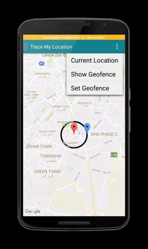 2> Вы можете увеличить или уменьшить вашу область GeoFence с длинным нажатием на синий маркер и перетащить