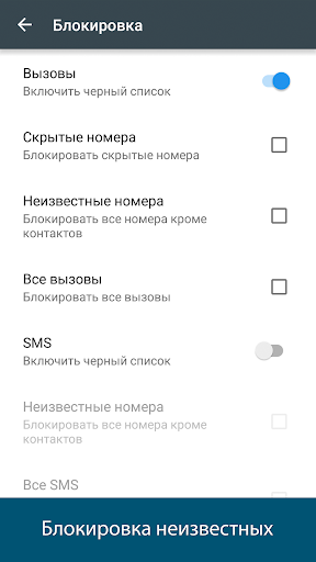 Кроме того, вы можете легко управлять настройками приложения, такими как, например, блокировка скрытых номеров или отключение уведомлений.