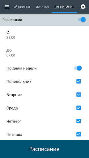 - Расписание по дням недели.