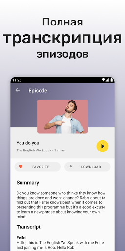 Вы также можете скачать эпизоды.Не стесняйтесь слушать английские подкасты в автономном режиме.