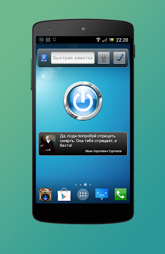 Цитата – это точная дословная выдержка из какого-либо текста или высказывания, от словосочетания или простого предложения до внушительного отрывка текста. Виджет показывает на вашем рабочем столе выбранное случайным образом мудрое изречение известного человека. Может очень пригодиться для повышения мотивации и личностного роста)