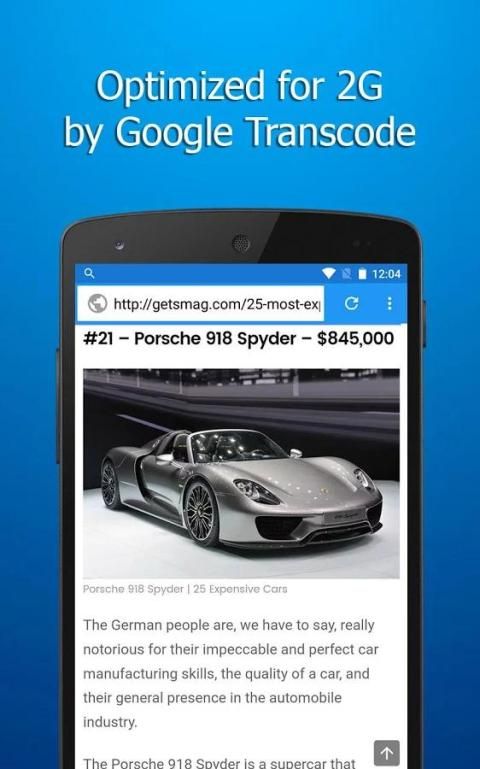 - Оптимизирован для 2G. Нагрузка 4 раза быстрее и использовать 80% меньше байт через Transcode технологии Google.