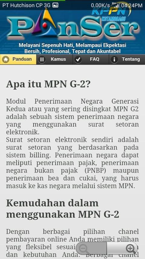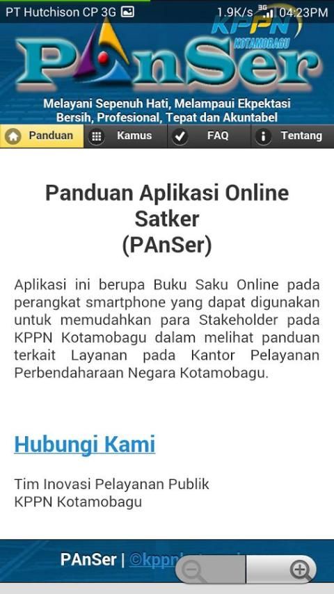 PAnSer (Panduan Aplikasi Online Satker) adalah aplikasi yang berupa Buku Saku Elektronik dengan berbagai menu dan fitur untuk memudahkan pengguna dalam mengakses informasi dan panduan dalam pengelolaan perbendaharaan dan panduan penggunaan aplikasi instansi.