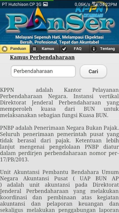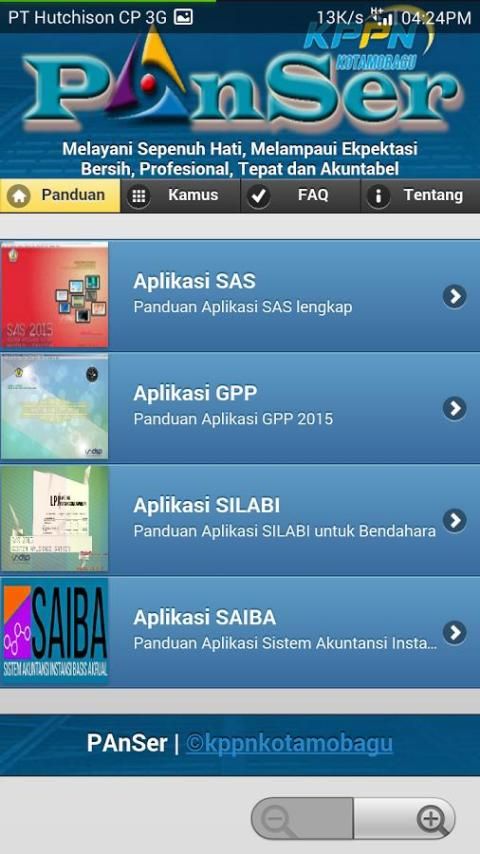 Panzer (Online Application Guide PIU) is an application form Electronic Pocket Book with a variety of menus and features to allow users to access information and guidance in the management of the treasury and agency application usage guidelines.