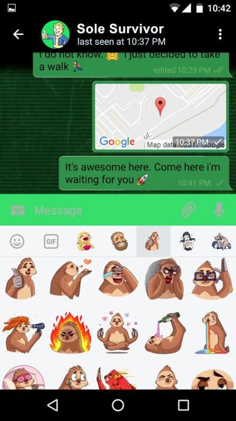 ★ Вам доступны все боты, стикеры, смайлики и текстовые игры, также как в официальной версии. Для этого достаточно воспользоватся поиском в Пип-Бой Мессенджер и ввести туда имя бота.