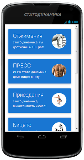 Это игра для тренировки пресса. Да, да, вы играете и тренируете пресс одновременно. Больше не надо делать однообразных надоедающих бесконечных скручиваний чтобы получить 6 кубиков пресса.