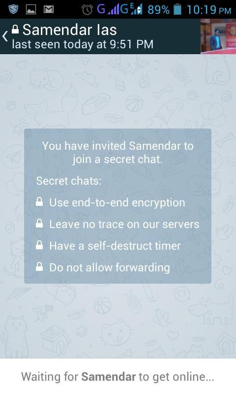Для тех, кто заинтересован в максимальной конфиденциальности, TelegramEX предлагает Секретные чаты. Секретные сообщения чата может быть запрограммирован на самоуничтожение автоматически обеих участвующих устройств. Таким образом, вы можете отправить все виды исчезают контент - сообщения, фотографии, видео и даже файлы. Секретные Чаты использовать конец-в-конец шифрования для обеспечения того, чтобы сообщение может быть прочитано только его получателю.