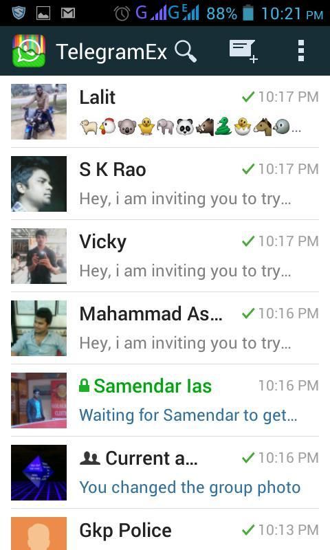 TelegramEX легко синхронизируется на всех ваших устройствах и может быть использован на настольных ПК, планшетов и телефонов, так. Вы можете отправлять неограниченное количество сообщений, фотографий, видео и файлов любого типа (.doc, .zip, EXE, АПК, .pdf и т.д.). TelegramEX группы имеют до 200 человек, и вы можете отправлять в срок до 100 контактов за один раз. Будьте уверены, чтобы проверить наш сайт, чтобы получить список TelegramEX приложений для всех платформ.