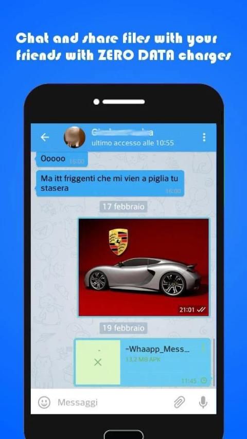 GROUP CHAT & SHARING: Con Whaapp, è possibile formare grandi chat di gruppo fino a 200 membri, di inviare le trasmissioni fino a 100 contatti alla volta, in modo rapido condividere video di grandi dimensioni, i documenti (.doc, .ppt, .zip, etc.) e inviare un numero illimitato di foto ai tuoi amici.