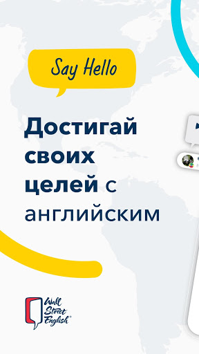 Wall Street English - это один из самых узнаваемых в мире брендов по изучению английского языка с уникальным методом преподавания, в котором работают более 400 школ в более чем 28 странах. Благодаря приложению Say Hello, Wall Street English предлагает совершенно революционный способ учить английский с мобильного телефона и знакомиться с новыми людьми, которые хотят повышать свой уровень, как и ты.