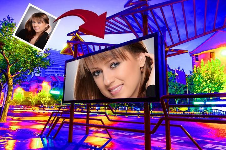 Сделайте свое изображение на рекламных щитах на улицах и здания объединить свою фотографию на рекламных щитах! Пусть все видят вас и понимаю, как замечательно вы через лучшие фотографии в режиме "рамки доски объявлений". Фантастический бы сделать все, кажется, как известный и ценный