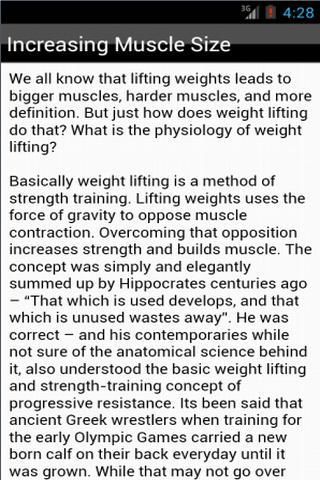 Weight Training & Bodybuilding is a free app providing a comprehensive guide to improve your health and become fitter through weight training and weight lifting. Learn about weight lifting subjects such as: Increasing Muscle Size Basic Equipment Weight Loss The Squat The Deadlift General Fitness Body Mass Index Strength Training Weight Training for Overall Health Weight Training for Kids Weight Training for Woman Gaining Bulk Gaining Definition Genetics Weight Training and Cross Training Physical Therapy Free Weights Weight Machines Home Gyms Nutritional Supplements Protein Personal Trainers Safety Tips Home vs The Gym Back Injuries What the Pros Say Aerobic Weight Training Raising Your Metabolism Weight Training for Women over 40 Weight Training for Men Over 50 Protect Your Hands Routines for Skiers Routines for Tennis Routines for Track Routines for Baseball Routines for Soccer and more... Download Weight Training & Bodybuilding for Free today.