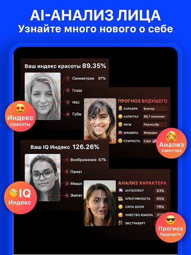 Мы разработали алгоритм, который определит ваш IQ без прохождения сложных многочасовых тестов. Достаточного одного фото! Добавьте фото в приложение и пройдите IQ тест.