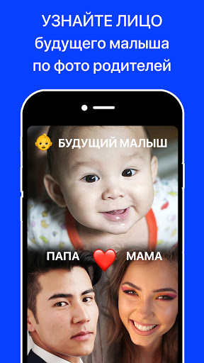 Приложение предскажет лицо будущего ребенка, малыша по фото родителей – достаточно загрузить фото двух родителей. Узнайте ответы на вопросы: какой будет ваш общий ребенок и на кого он будет похож?