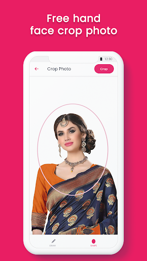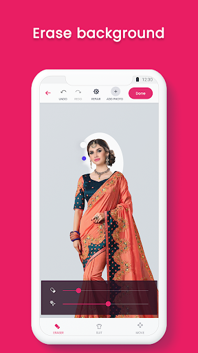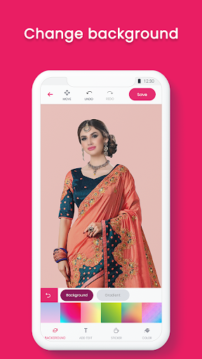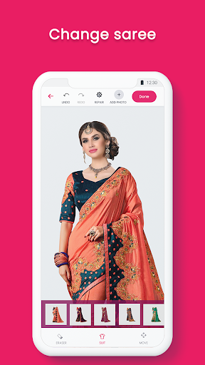 Woman Saree Photo Suit: Simple & Traditional app is a traditional outfit-oriented application that enables the ladies out there to try out the new and explicit range of sarees in different patterns, color combinations, and necklines.