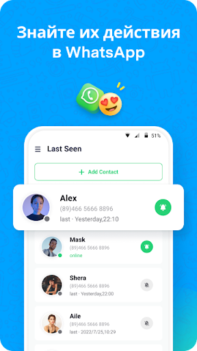 Вы будете мгновенно уведомлены каждый раз, когда выбранный контакт становится онлайн/офлайн в режиме реального времени.