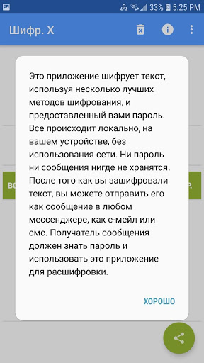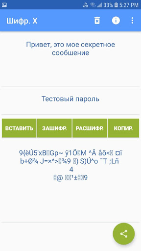 После того как вы зашифровали текст, вы можете отправить его как сообщение в любом мессенджере, как е-мейл или смс.