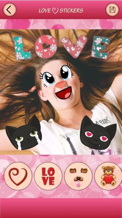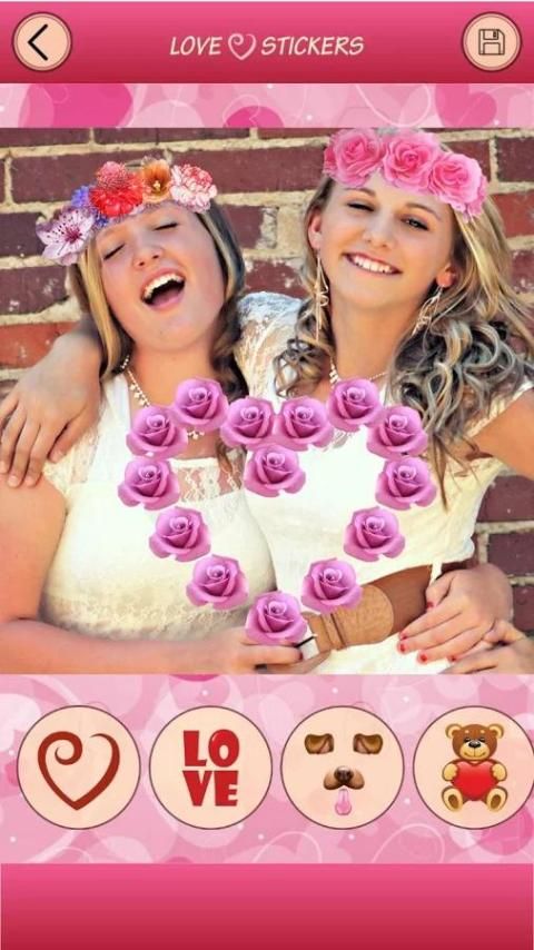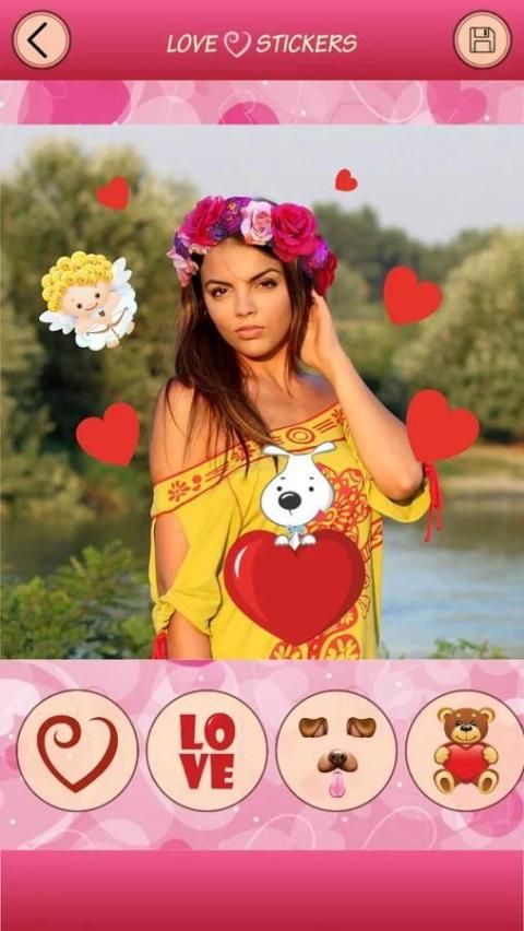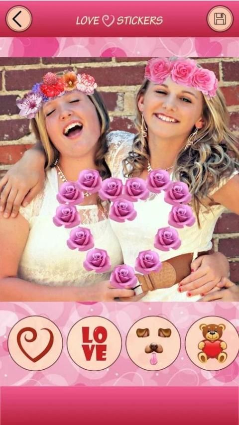 • Создавайте фото эффекты в виде сердечек, поцелуев и любовных историй