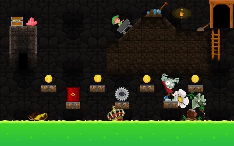 Find new and exciting paths to explore across the mine, and go through those special levels to earn more nuggets! Featuring many exciting environments in 10 different settings: dash through the Crazy Caves, fight the horde in the Zombie Caves, make your sweetest dreams come true in Sweet Wonderland, hurtle through the lush and dangerous Amazon jungle, immerse in the terrific Undersea World, take a dive in the Horror Land, visit the wonderful Snow Land, navigate on the Steam Factory, find your way on the Jurassic Jungle and explore the Pharaoh's Tomb, all this and many surprise levels which will amaze you with their colorful scenarios.