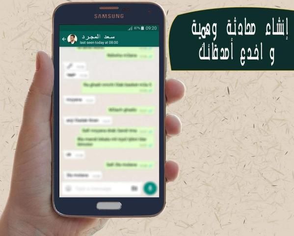 Арабская версия приложения разговора Watts подделка стала доступна для пользователей Android арабов теперь вы можете создавать разговор стал поддельный Watts августа на телефоне и заставить их поверить, что ты в ваттах августа разговоре с Саадом реферата! Вы б принца или знаменитости, которые вы любите. Также применяют разговор Watts подделку что позволяет проектировать и воображаемые разговоры во имя и образ кого вы хотите. Все, что вам нужно сделать, это выбрать имя и изображение человека, которого вы хотите поговорить с ним, а также дизайн и отредактировать все детали на экране легко. Вы также можете оставить свой фальшивый разговор с друзьями после завершения Tharirha.astmta этот трюк с вашими друзьями и сделать считаю, что разговор оригинал, а не подделка разговор.